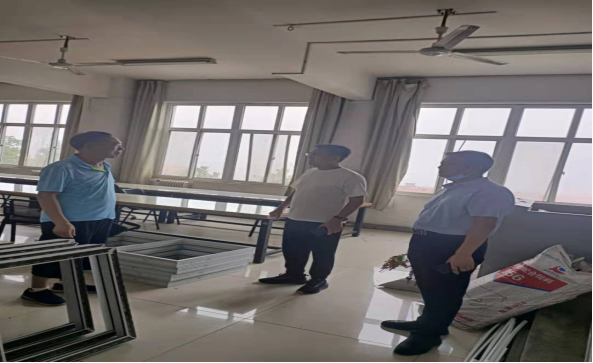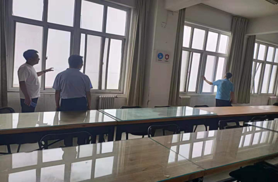 在排查的过程中,刘斐经理催促在实验室施工的单位要加快工期,不耽误正常开学。同时也要因时制宜,下雨期间适当的停工,做好实验室防水、防雨工作,确保实验室电器、器材的安全。刘书记也强调,汛期期间,切实落实汛期实验室的值班工作,所涉及的人员要坚守岗位,及时通报汛情。