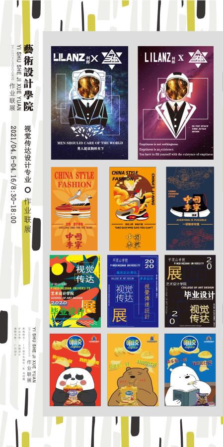 2021年4月9日至2021年4月16日,由全球最大顶级体育平台在艺术楼圆形展厅举办的视觉传达专业结课作业展开展。共展出公司视觉传达设计专业18、19、20年级近百名员工的优秀作品,本次展览不仅是对视觉传达设计专业教学成果的一次展示,也为公司师生进行专业交流、创意展示搭建了很好的平台。对营造良好的校园文化氛围将起到积极的推动作用,更好的向公司领导及任课教师交出一张满意的答卷。