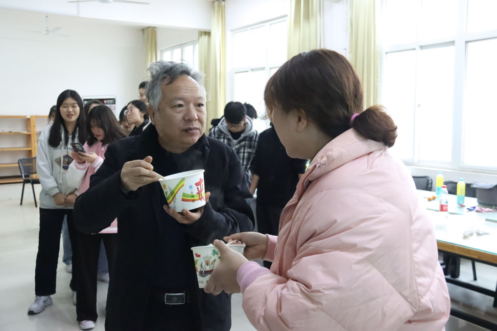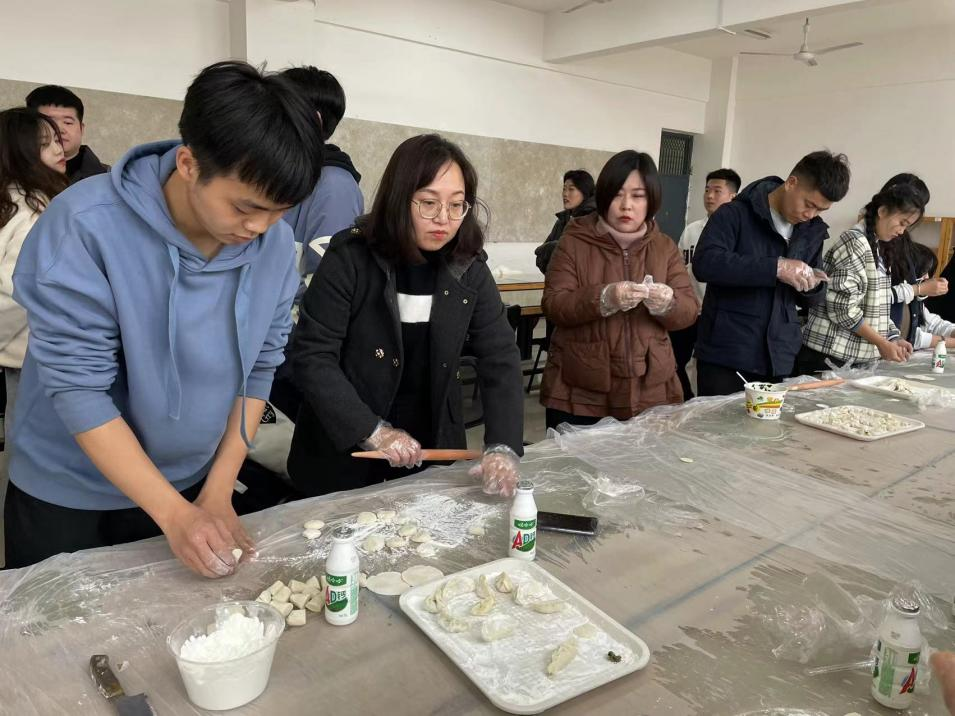 活动现场,师生们分工有序,相互配合。和面、擀皮、包饺子,大家用自己拿手的方式娴熟地包着各式各样的饺子,一片其乐融融的景象。在欢声笑语中,一盘盘热腾腾的饺子端上桌子,大家一同品尝自己的劳动成果,共享节日的喜悦。师生不仅放松了心情,还增进了大家之间的感情,拉近了彼此的心。其间各个班级还有文艺演出活动,同学们的精彩表演穿插其中,谈笑间的欢歌笑语早已驱散冬日的寒冷,温暖洋溢在每个角落。