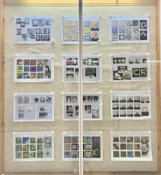 展览的第一部分集中展示了员工们的平时作业成果。通过"遭遇材料—感受材料—组织材料"三阶段训练,员工们对金属、木材、塑料等基础材料进行了富有想象力的解构与重组。特别引人注目的是,这些二维材料面作品通过围合、折叠等手法被转化为实用设计品:用瓦楞纸制作的几何感手提包、由废弃光盘拼接而成的未来感首饰、以麻绳编织重构的装饰灯具等,充分展现了"构成即设计"的教学理念。