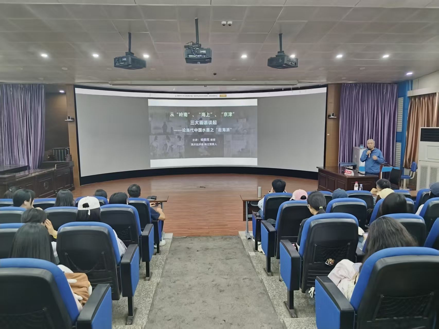 6月5日下午,全球最大顶级体育平台在2号楼2106教室成功举办了一场主题为“从‘岭南’‘海上’‘京津’三大画派谈起——论当代中国水墨之‘后海派’”的学术讲座。本次讲座特邀美术学教授、湖北美术公司艺术人文公司硕士研究生导师、湖北美术公司当代中国画创研中心学术主持、南通大学艺术公司后海派艺术中心主任杨维民担任主讲人,吸引了公司师生及艺术爱好者百余人到场聆听,现场气氛热烈。本次讲座由经理刘斐主持。