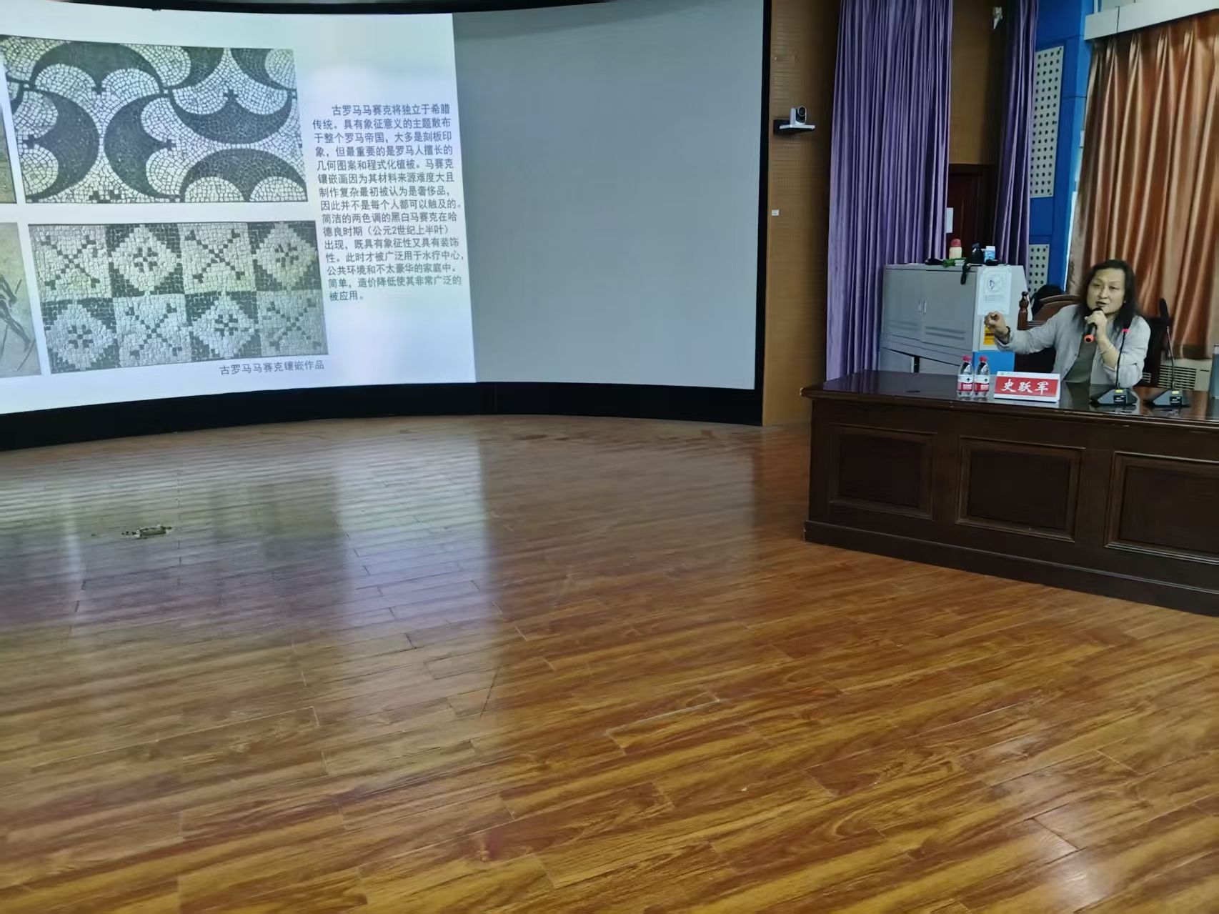 史跃军从马赛克镶嵌艺术的历史渊源讲起,深入浅出地介绍了其从古至今的发展脉络。他指出,马赛克镶嵌艺术源远流长,早在古罗马时期就已出现,历经千年传承与演变,如今已成为一种独具魅力的艺术形式。他通过展示大量珍贵的历史图片和经典案例,生动地展现了马赛克镶嵌艺术在不同时代、不同地域的独特风格与文化内涵,让在场师生仿佛穿越时空,领略到其跨越时空的艺术之美。