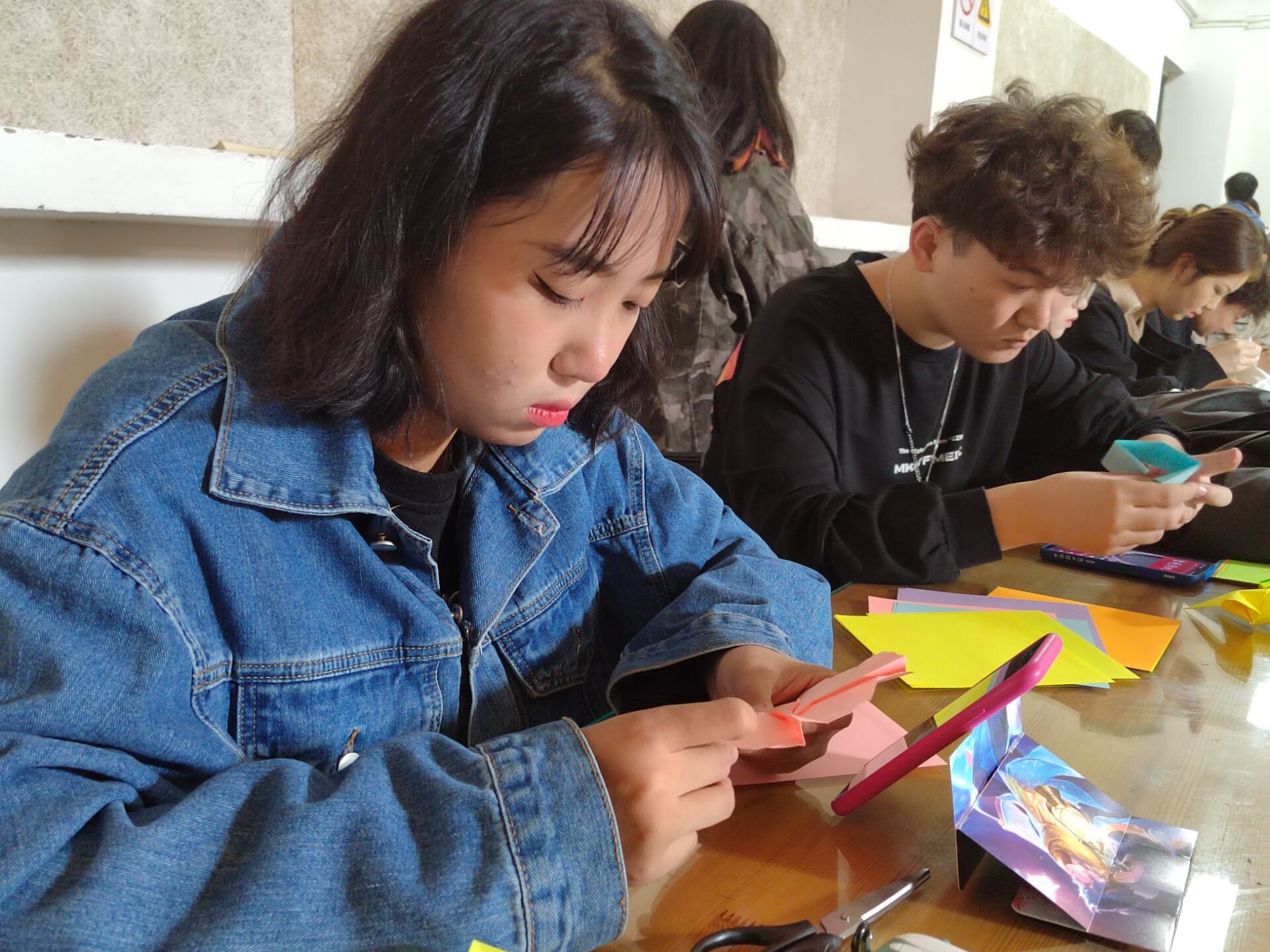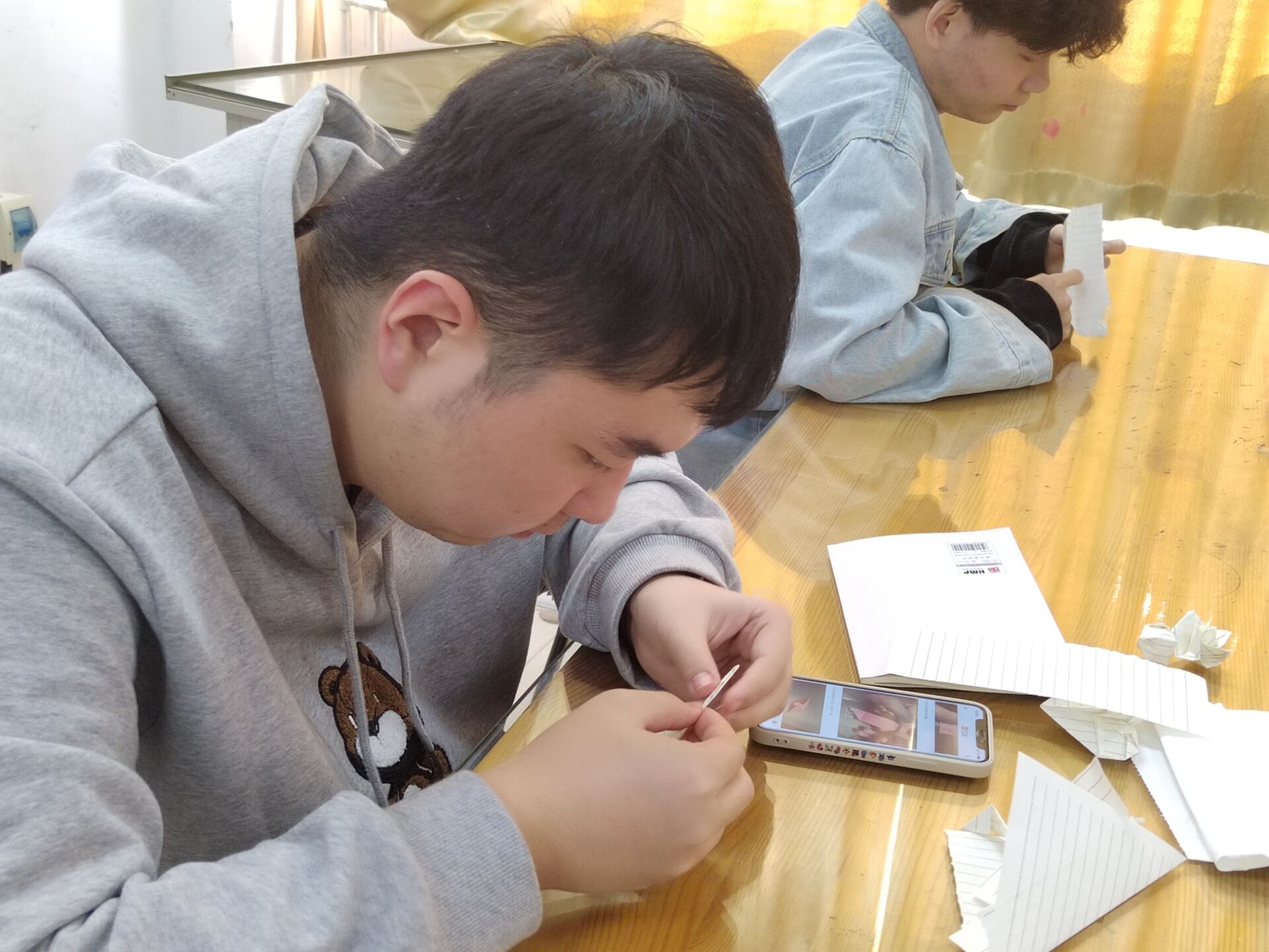 活动伊始,主持人为我们播放折纸视频,激发了同学们的想象力,接着,通过剪纸、折纸的方式,在同学们的巧妙改造下,看似简单的原材料,变化成一个个造型别致的作品,一件件精美的手工艺品,展示的不仅是智慧和技巧,更是精雕细琢的工匠精神,以及对生活由衷的热爱。