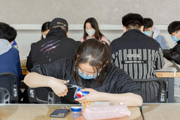 活动伊始,由负责人讲解了环保手工共制作带来的益处,以寓教于乐的方式讲解如何利用废旧材料变废为宝。负责人一边细致讲解一边拿起制作材料进行示范。接着,同学们通过新奇的构思,将奇妙的想法与灵巧的双手完美结合,对冬奥特色与低碳环保的理念进行展示,制作出别具特色的手工艺品,同学们的作品丰富多样、创意百出。同学们纷纷表示本次活动不仅宣传了环保理念,更为大家提供了一个展示自己的平台,为春天里的艺设带去了不一样的温度。