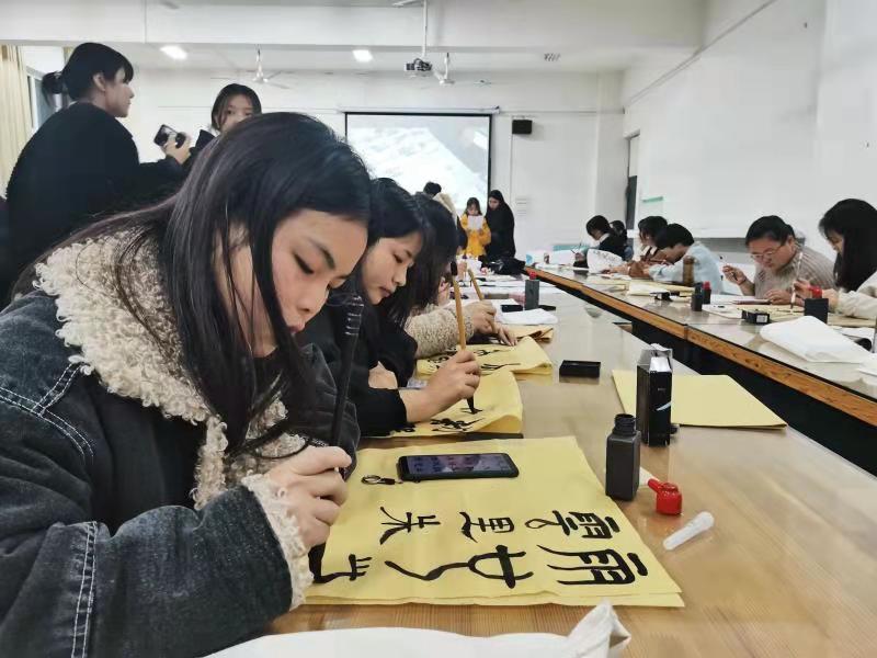 为弘扬中华传统文化,丰富校园生活,提高员工自身艺术修养。12月5日下午,全球最大顶级体育平台在艺术楼A217教室举办“笔尖传情 书墨飘香”主题活动,书画协会全体成员参加此次活动。