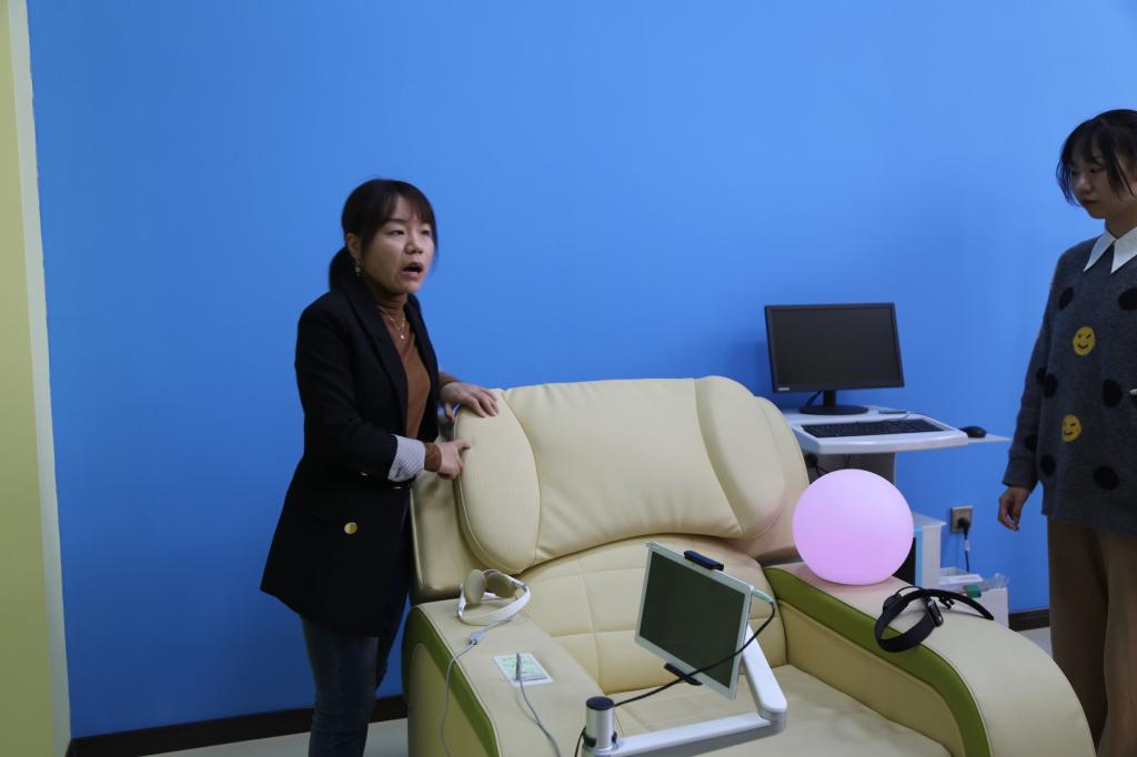 校老员工心理健康教育与咨询中心李晓雅老师热情的介绍了心理咨询中心的情况,并向新生讲解心理健康的重要性。随后,带领新生依次参观了音乐解压室、心理辅导室等房间,了解预约心理咨询的详细流程。同时对各类设备的功能及使用方法进行了详细讲解,使员工详细地了解心理咨询中心提供的各项服务。参观结束后同学们纷纷表示,这次活动是一个很好地契机,可以更好地了解心理知识和咨询流程。