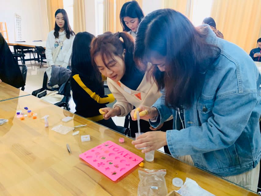 活动开始,主持人向同学们介绍滴胶手工制作方法和注意事项。接着,帮助同学们调制并分配制作滴胶所用的材料。随后,同学们用准备好的材料进行制作,沉浸于创作构思中。活动最后,在负责人与同学们共同努力下一件件晶莹剔透的滴胶作品诞生,同学们通过投票选出优秀作品并报以热烈的掌声。大家纷纷表示,通过本次活动,了解到艺术与生活密切联系,应当在日常生活中积极地发现美、创造美。