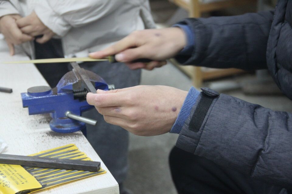 在活动开始前,社团负责人先向同学们讲述了制作筷子的步骤,并现场示范了固定、打磨、削尖等等一系列的的动作。活动期间,同学们认真制作筷子,并发挥创意在筷子上刻上值得祝福语或者值得纪念的日子。最后,每个同学都制作了一双精美属于自己的筷子,并且同学们之间互相交流表达了自己的创作理念。