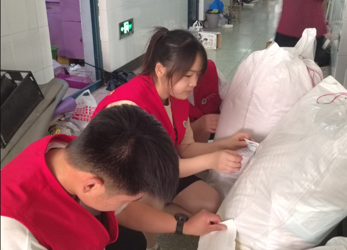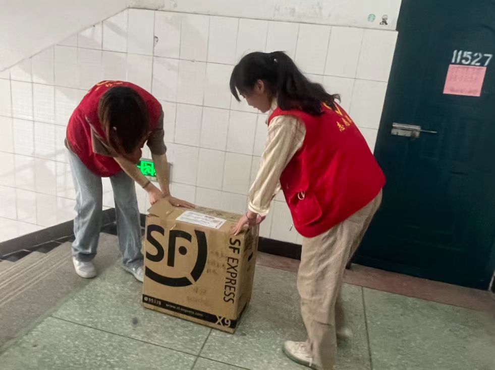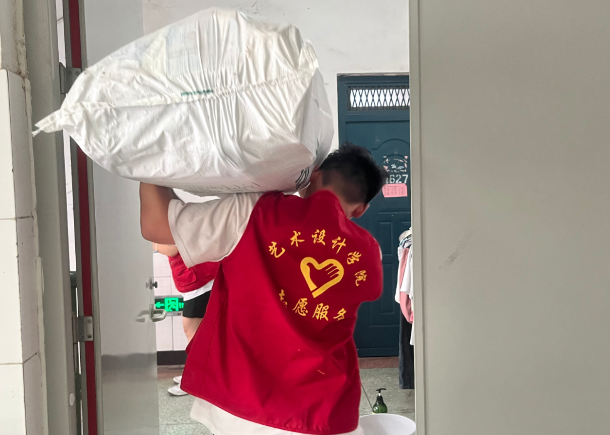 尽职尽责的志愿者们,通过电话与毕业生进行远程沟通,事无巨细的与毕业生反复确认,尽力将每一件物品都完好无损的送到毕业生手中。整理物品、核查信息、粘贴标签、打包搬运,靓丽“志愿红”在各栋公寓楼之间穿梭,各项工作都在有条不紊的开展,望着整整齐齐的行李袋,即使汗水浸透了衣衫,也毫无怨言。