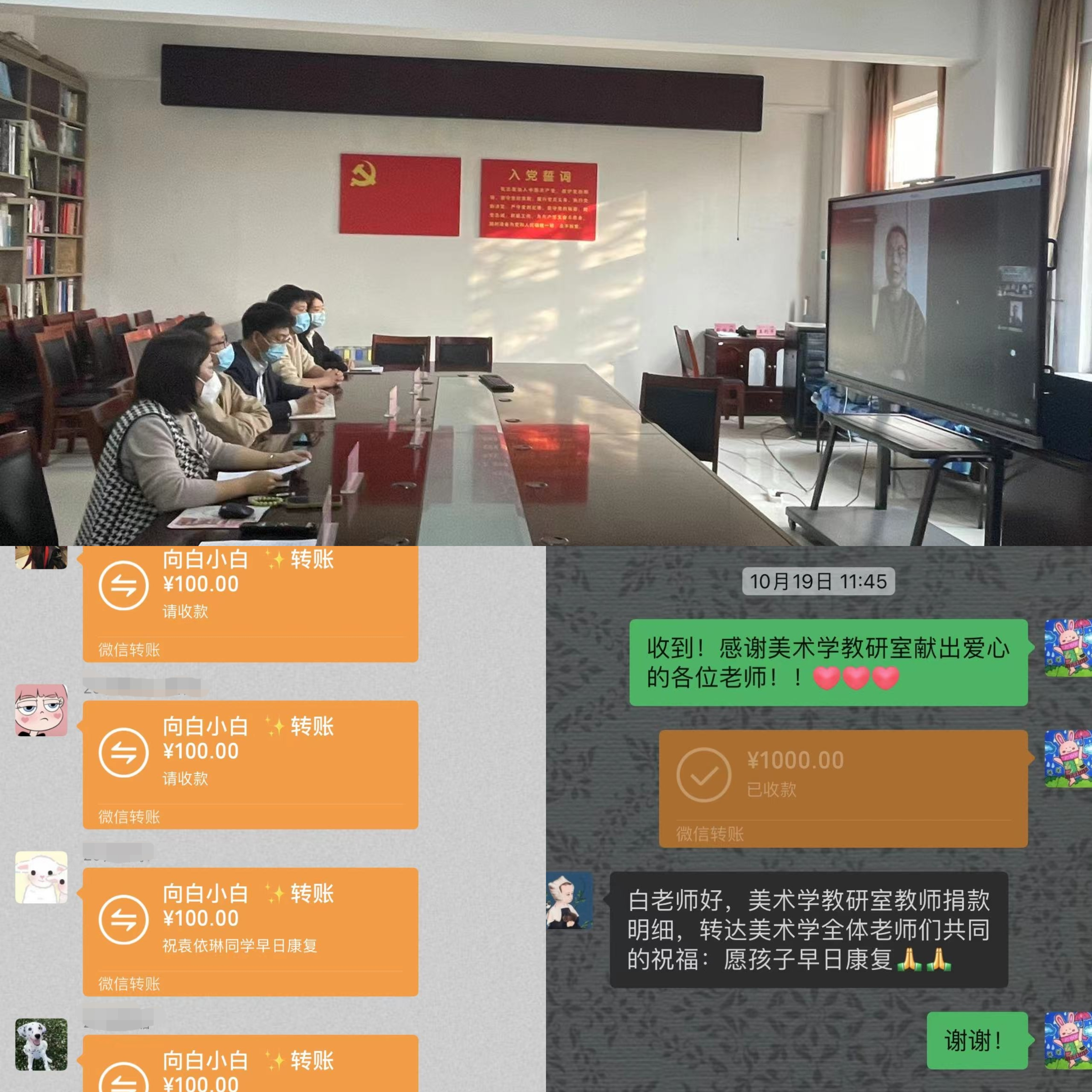 病魔无情、艺设有爱,接力爱心、传递希望。线下,师生以党小组、团支部为单位积极踊跃奉献爱心;线上,得知消息的员工们、社会爱心人士们,纷纷献出爱心,共同努力帮助这个家庭度过难关。涓涓之水,汇出爱的暖流;爱心汇聚,筑起生命的长城,短短几天时间,共募集善款75342.1元。