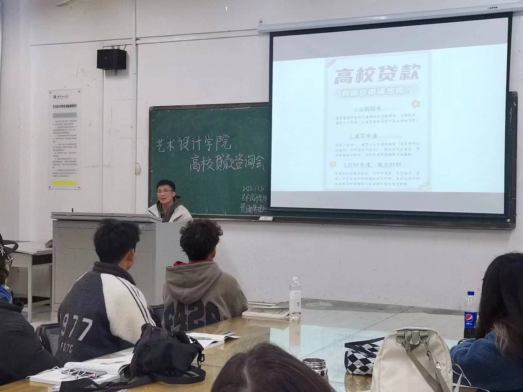 会议伊始,宋坤宇老师对河南省高校贷款进行详细介绍和深入解读,针对同学们比较疑惑的贷款范围、贷款标准、申请条件、申请时间、发放时间等问题进行了详细介绍。最后,同学们认真听讲,积极配合。大家纷纷表示,通过此次会议同学们对高校贷款的政策又有了更清晰的认识。