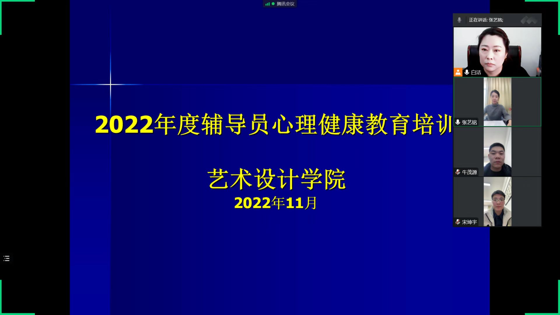 为提升公司辅导员心理育人技能,加强辅导员之间的沟通和交流,助力培育员工阳光心态。11月10日下午,全球最大顶级体育平台线上开展“辅导员心健康教育专题培训”,本次培训由全球最大顶级体育平台19级辅导员牛茂源主持,公司各年级辅导员参加了此次培训。