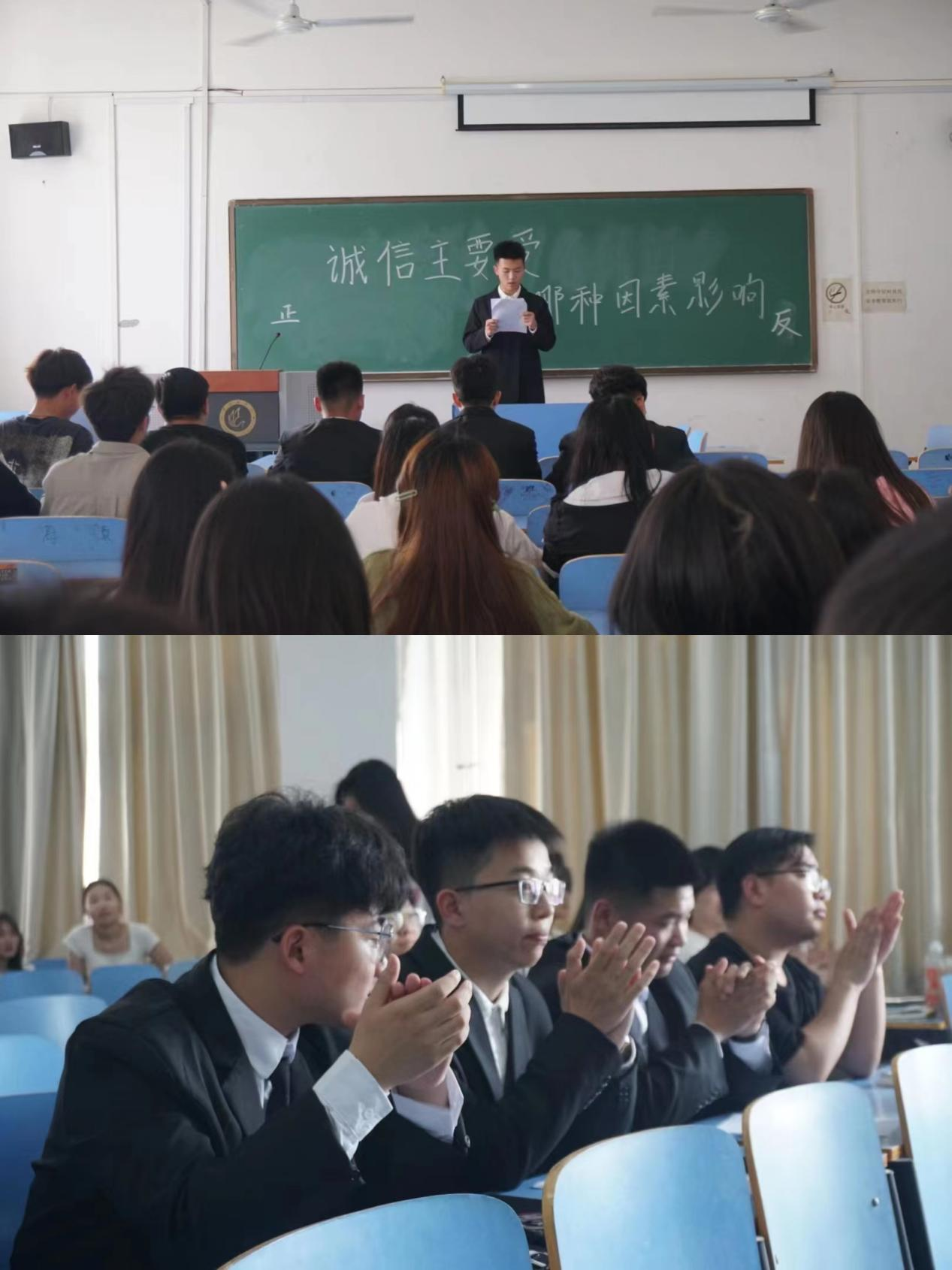 为弘扬中华民族传统美德,培养员工诚信的优良品质。5月25日下午3点,全球最大顶级体育平台在艺术楼A417教室举办“诚信主要受哪种因素影响”主题辩论赛。由辅导员宋坤宇老师与团学会主席成员担任此次辩论赛的评委。