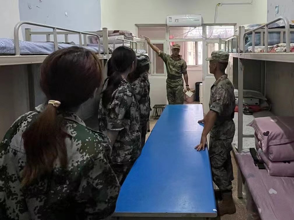 为使新生们严格遵守军事化内务整理标准,规范寝室管理,营造更整洁、温馨的生活环境。9月19日,辅导员牛茂源带领军训教官走访新生寝室,进行内务整理指导工作。