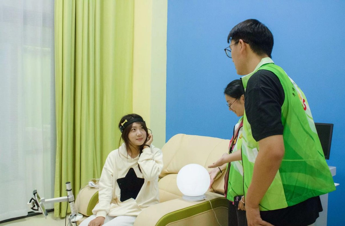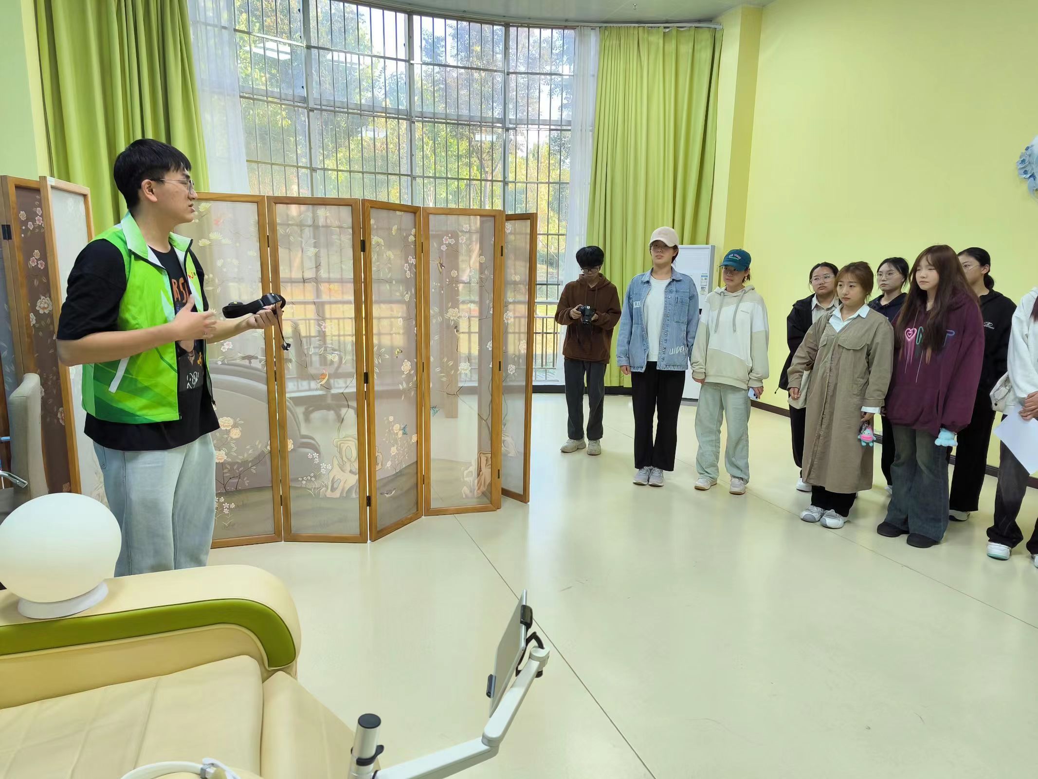 活动伊始,讲解员首先向同学们介绍心理健康教育与咨询中心的整体架构和工作职能。随后,带领同学们有序参观音乐放松室、催眠室、宣泄室等房间。为了让员工更加充分的了解功能室的作用,有更好的参观体验,讲解员带领员工亲自体验各个减压设备。讲解员用生动、有趣的方式,引导同学们认识和调节自身情绪,并鼓励同学们正确看待学习和生活中的压力和困难。