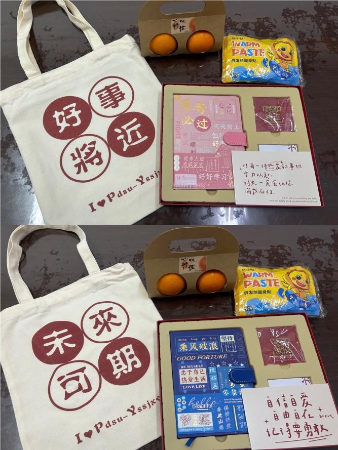 慰问中,郑东丽详细了解同学们的学习情况,鼓励他们要坚定信心,认真备考,争取在考研中取得优异的成绩。她还表示,公司及公司将一如既往地为考研员工提供支持和帮助,为他们创造良好的学习和生活条件。随后,郑东丽向考研员工赠送了“心想柿橙”、学习文具等暖心福袋。这些福袋不仅表达了校领导与公司对考研员工的关心和支持,也为他们的备考生活增添了一份温暖和动力。