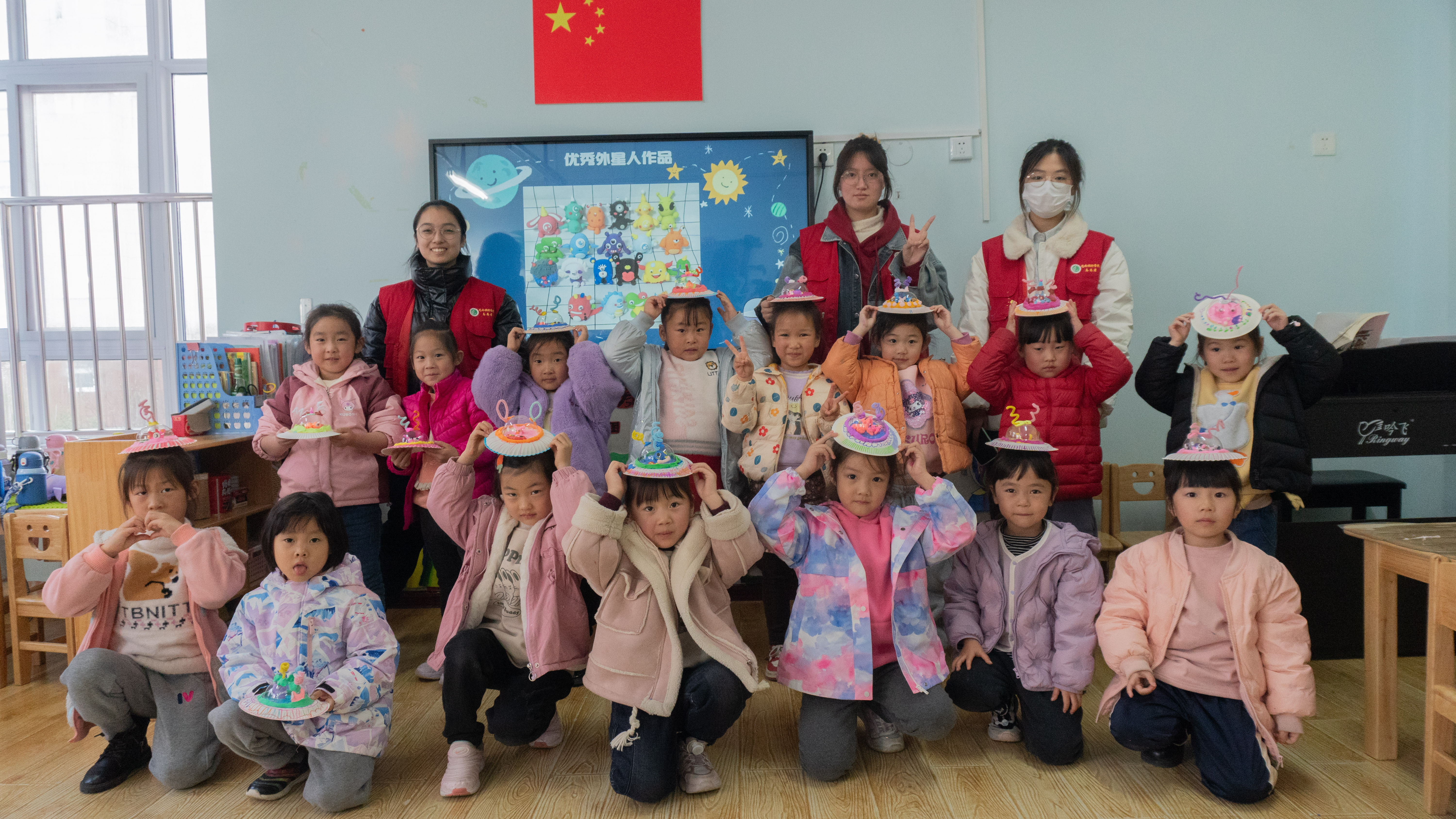 到达梅园路幼儿园后,在园长的带领下,志愿者们依次进入自己所负责的班级开展活动。经过短暂的交流与互动,志愿者们开始向小朋友们传授知识。首先,志愿者们引导小朋友们对太空外星人进行幻想,并拿出自己提前做好的成品向孩子们展示,小朋友们兴奋的围在桌前,眼中闪烁着无限想象。接着志愿者们耐心细致的向小朋友们介绍了制作步骤,小朋友们便迫不及待的开始制作属于自己的小飞船。