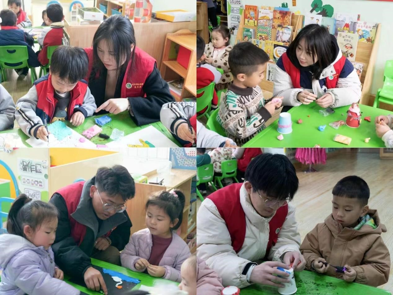 到达梅园路幼儿园后,在园长的带领下,志愿者们依次进入自己所负责的班级开展活动。志愿者为小朋友们带来了丰富多彩的课程,与小朋友们一起制作各种黏土手工,用生动有趣的方式激发小朋友们的学习兴趣和创作能力,一步步引导小朋友们完成手中的作品。