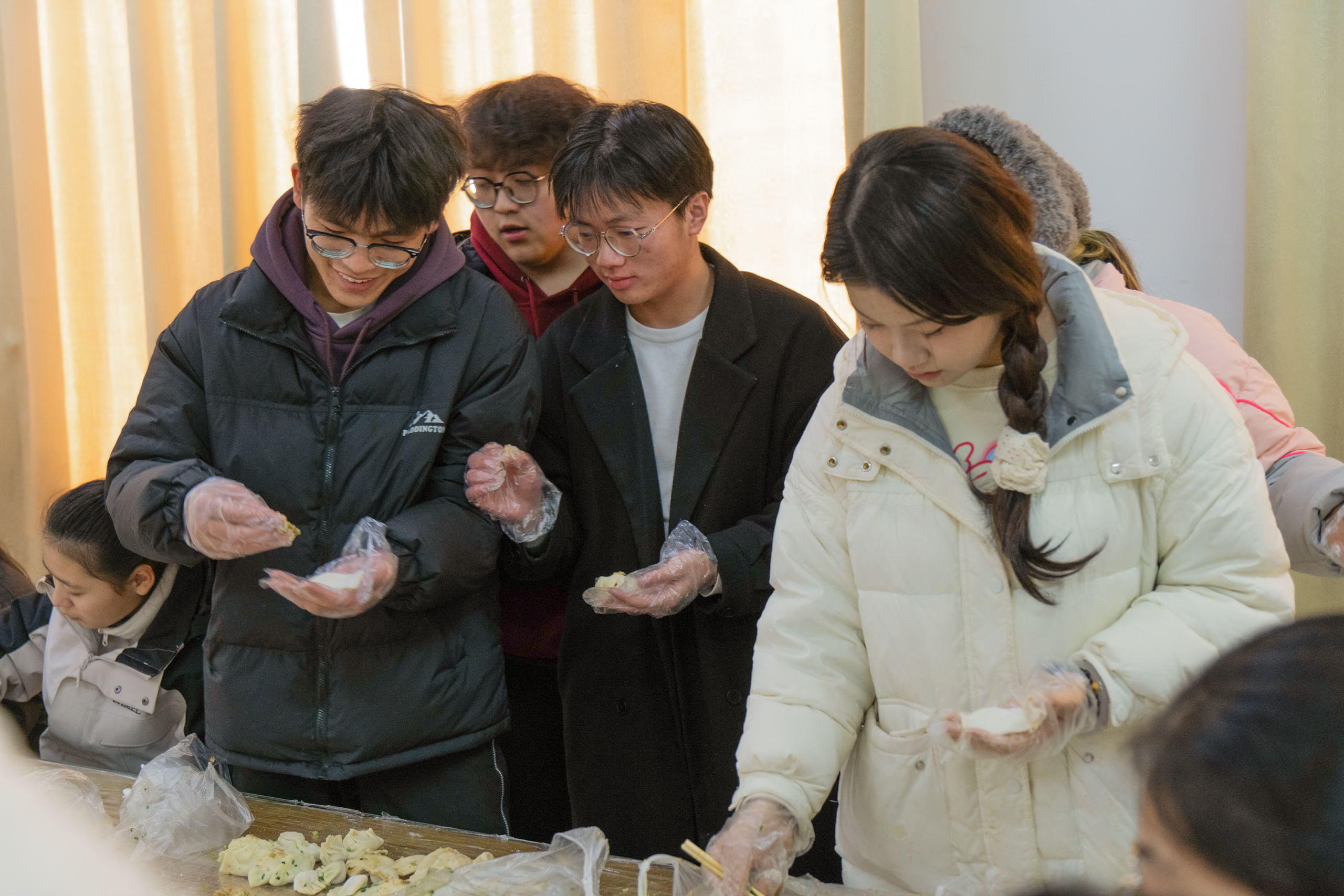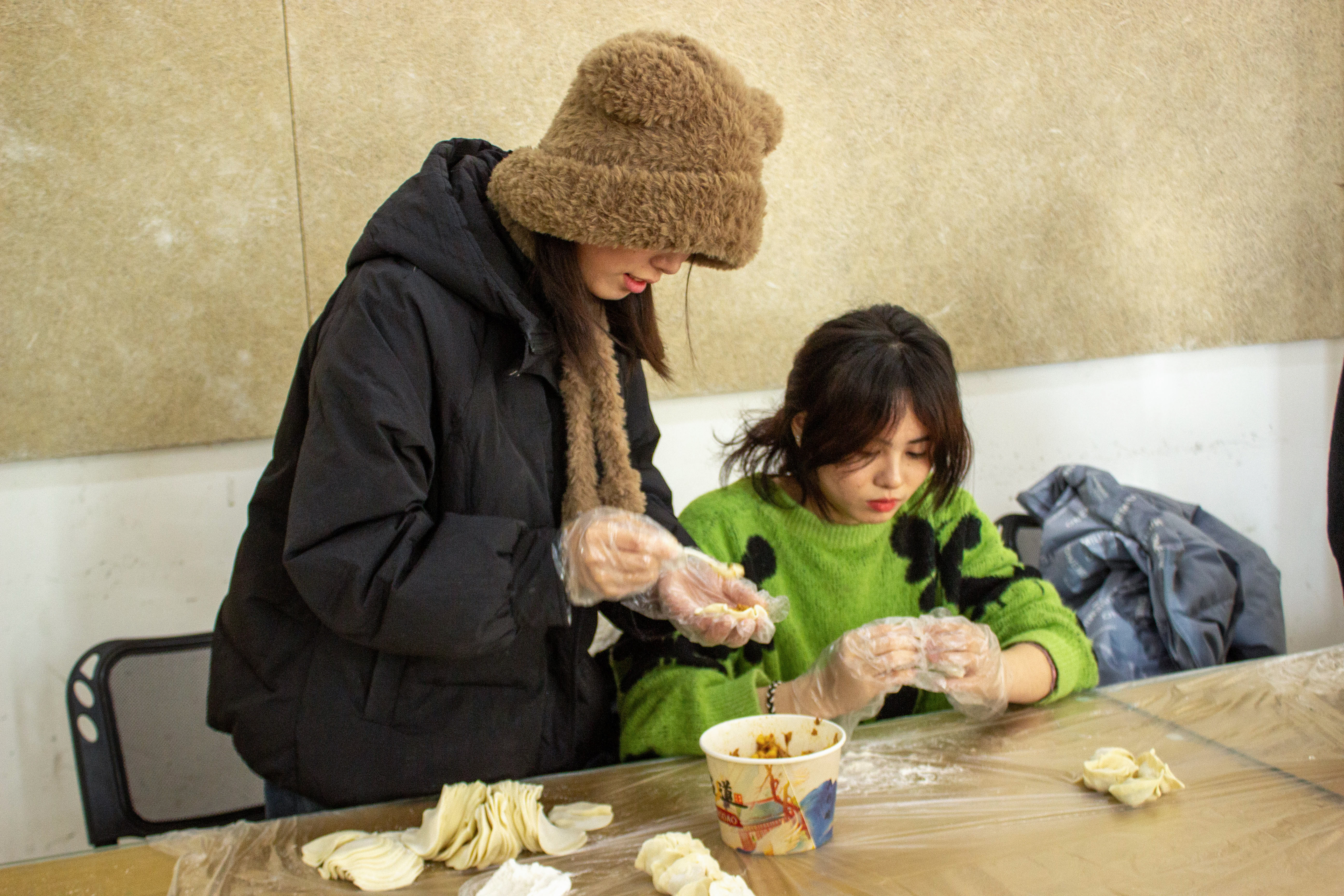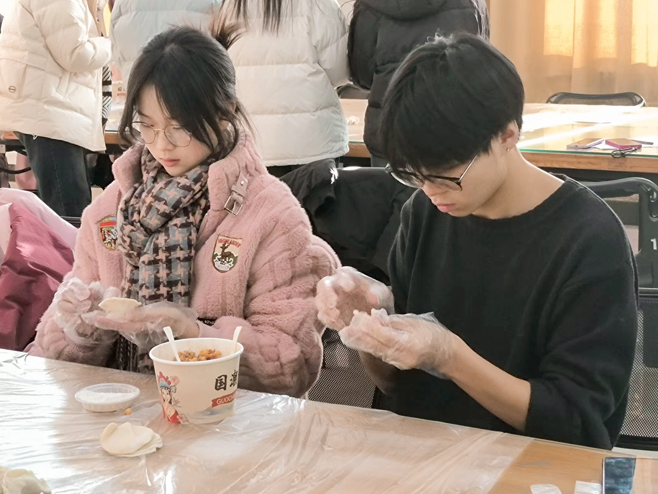 手法娴熟的同学们互相切磋,传授“独门经验”;手法生疏的同学们也不甘示弱,在向“熟练工”们请教之后,包出了造型各异的饺子。同学们也快速地融入到包饺子活跃的氛围之中。冬日的第一份水饺在同学们的欢声笑语中出炉,一盘盘饱满的水饺带给同学们冬季独有的温暖。