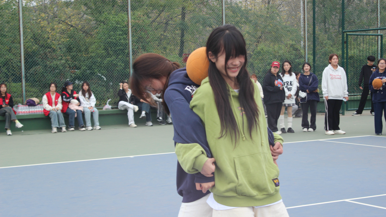 排球场上洋溢着欢声笑语,同学们在体育项目中尽情挥洒汗水,展现出积极向上的精神面貌。在拔河比赛中,各队同学齐心协力,绳索两端的拉扯不仅是力量的较量,更是团队协作与意志的比拼;八字跳绳比赛中,团队成员之间的默契配合至关重要,同学们须在极短的时间内完成精准的跳跃动,以保持绳子的连续转动;背对背夹球比赛中,同学间两两配合,默契地移动步伐,保持球的稳定。