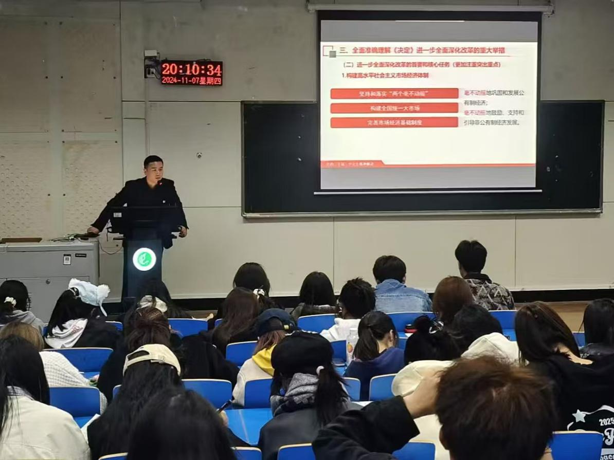 马克思主义公司王志浩博士以《新征程上进一步全面深化改革的行动纲领》为题,围绕党的二十届三中全会提出的重大战略、重大部署、重大论断作了系统阐释和权威解读,帮助学员更好地理解和把握全会精神的核心要义和实践要求。