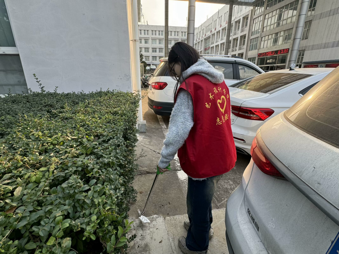 志愿者携带清扫工具,对艺术楼及周边的公共区域进行展开了全面而细致的清扫行动,确保不遗漏任何一个角落。他们满怀热情,耐心十足,彼此间默契配合,不放过任何一处细微之处,力求完美无瑕。