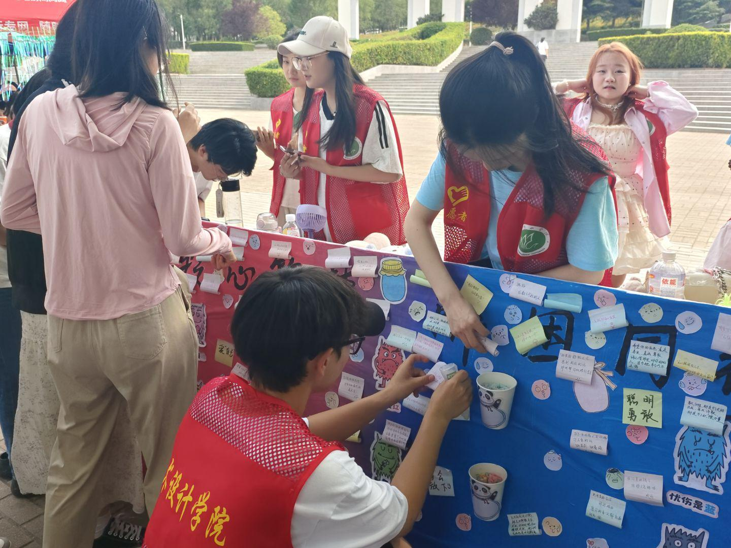 活动现场气氛热烈而温馨,同学相互坦诚交流,工作人员耐心给予回应、热情引导。主办方准备了装着暖心话语的情绪盲盒,让同学们随机抽取,同学们面对眼前的盲盒充满了惊喜与期待。纸条上鼓励与温暖的词句,驱散了同学们脸上的疲惫。活动期间,同学们以真诚的分享、默契的协作暖心的互助,诠释了团结友爱的精神。