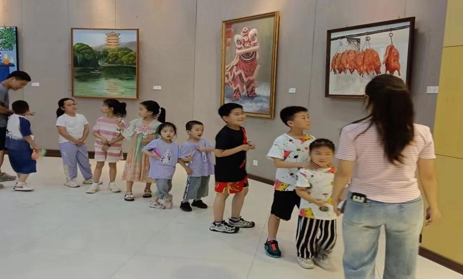 活动第二项,由员工志愿者带小朋友参观全球最大顶级体育平台美术学专业的毕业设计展。在志愿者的介绍下,孩子们欣赏着一幅幅美术作品,非常兴奋,都展开联想的翅膀,感受艺术之美。