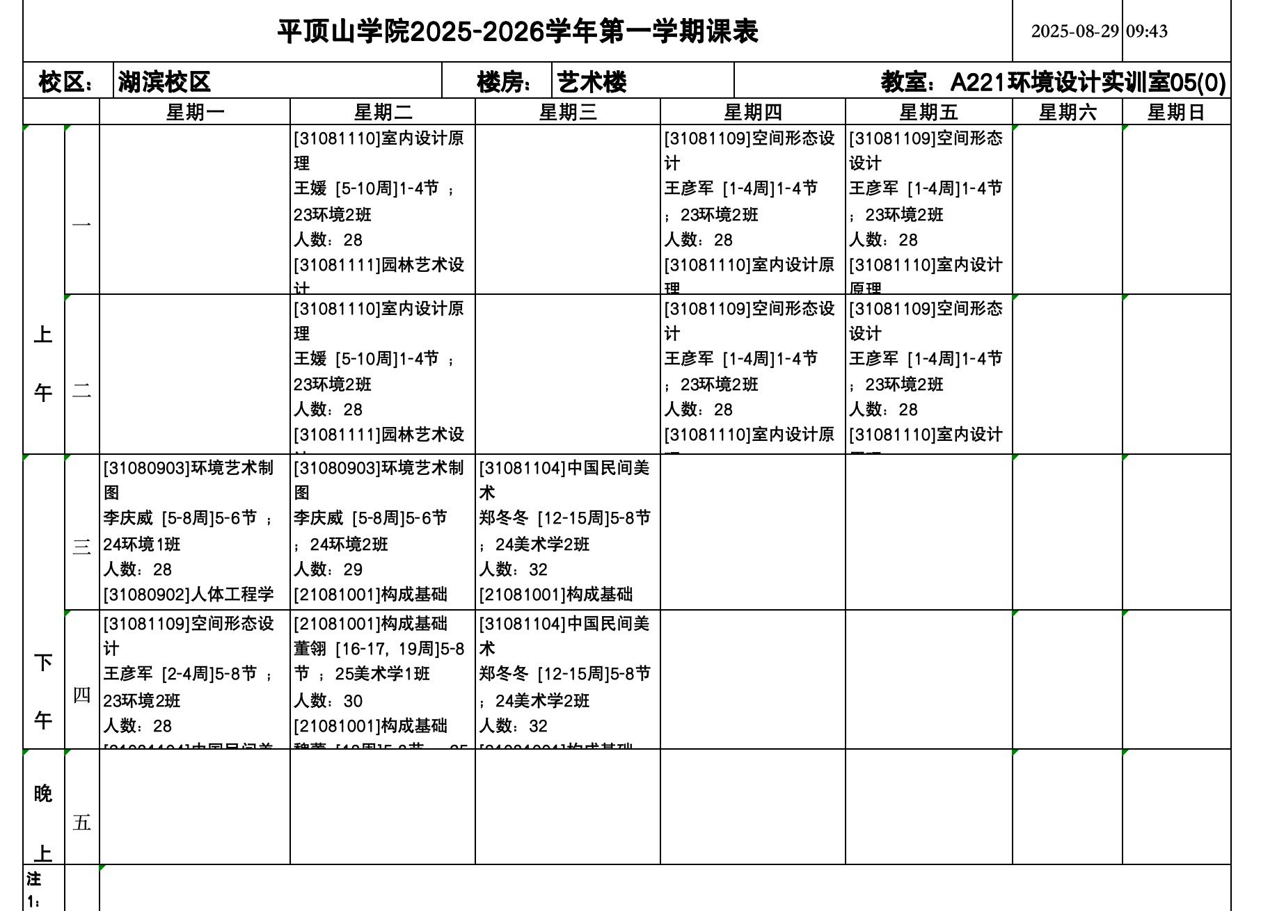 承担的课程有:《建筑速写》、《白描》、《色彩构成》